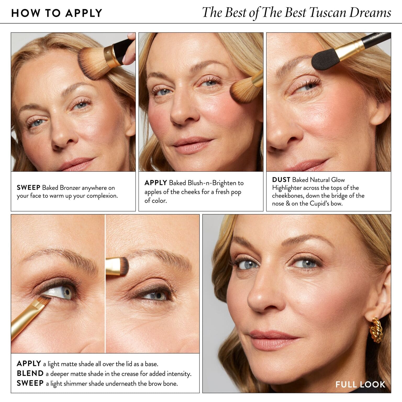 It’s time for your bake-over! This palette features a stunning assortment of our bestselling Italian-made baked products, all inspired by a Tuscan getaway. It includes six luxurious baked eyeshadows, Baked Bronze-n-Brighten in Roman Holiday, Baked Natural Glow Highlighter in French Vanilla and Baked Blush-n-Brighten in Starfish Island. Each versatile shade is highly pigmented to sculpt, define and enhance for flawless, all-day wear.